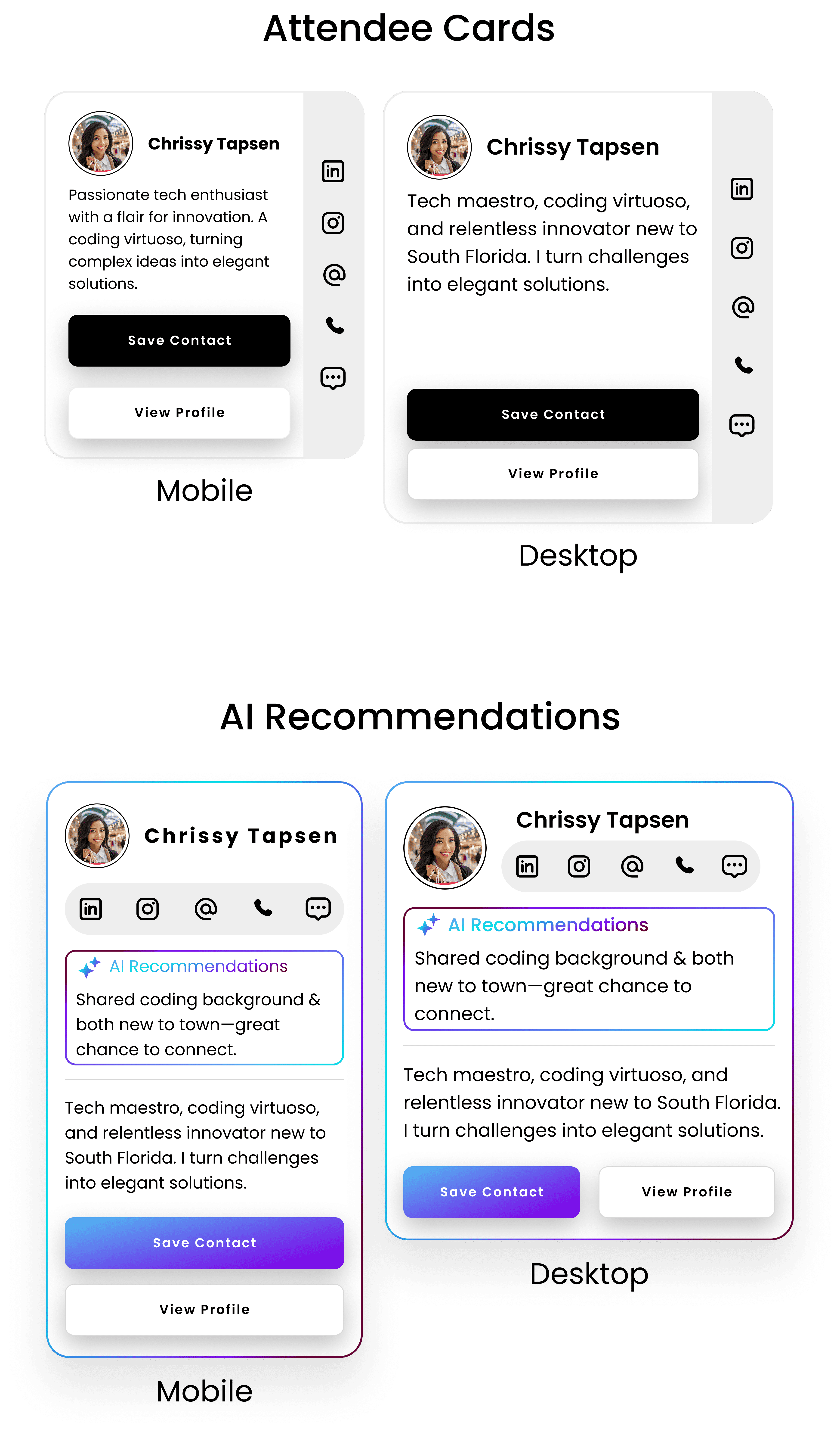 I initially hesitated to include the AI assistant, concerned it would overcomplicate the experience. As the concept evolved, I saw that guided support added structure to early outreach, which was a major pain point for users. Other ideas, such as mood indicators, were intentionally set aside because they required more time to design responsibly.