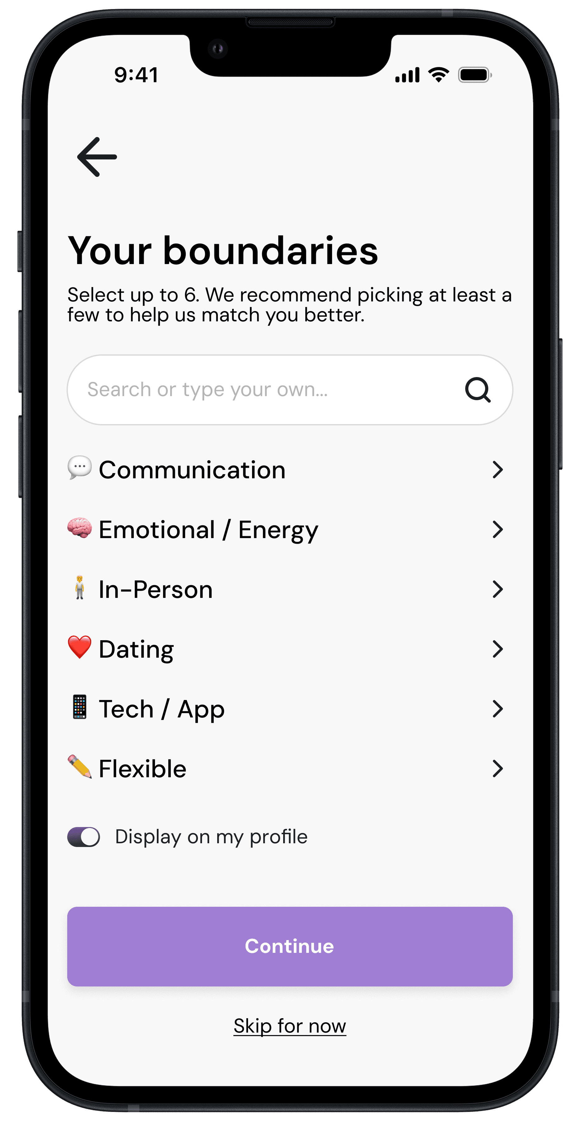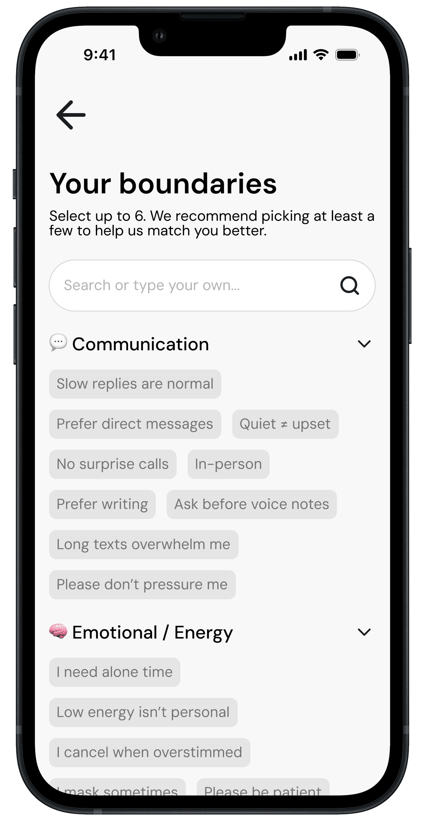 Explore ways to communicate interaction preferences between matched users, helping set mutual expectations and promote a safer, more inclusive experience