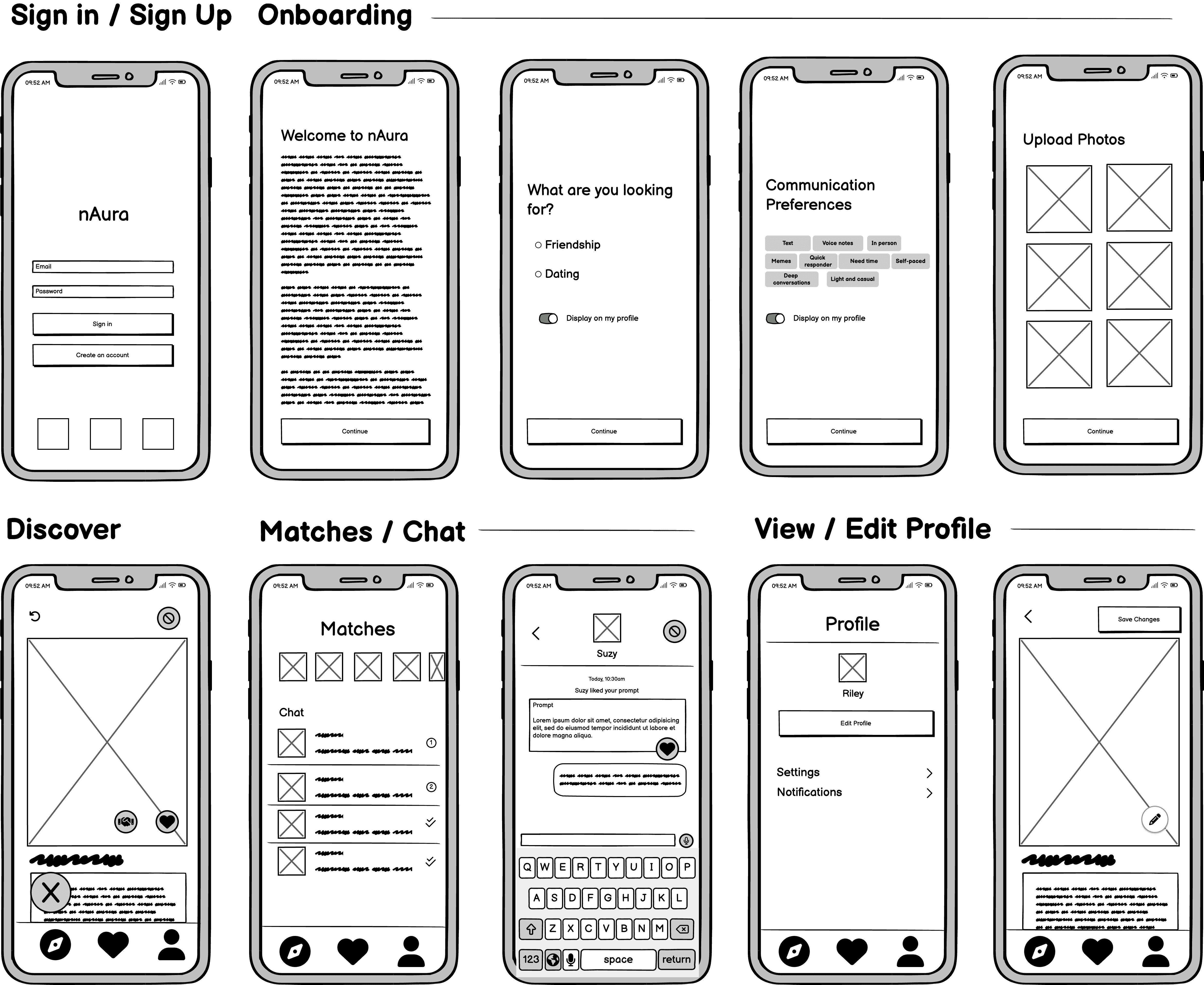 After prioritizing key features, I mapped out nAura’s main user flows to guide the structure of the app.