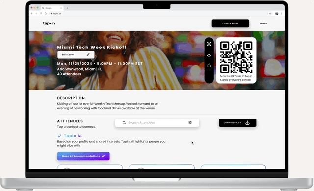TapIn is a live event networking platform that gives attendees event-specific profiles, allowing them to see who “tapped in” and connect more intentionally.